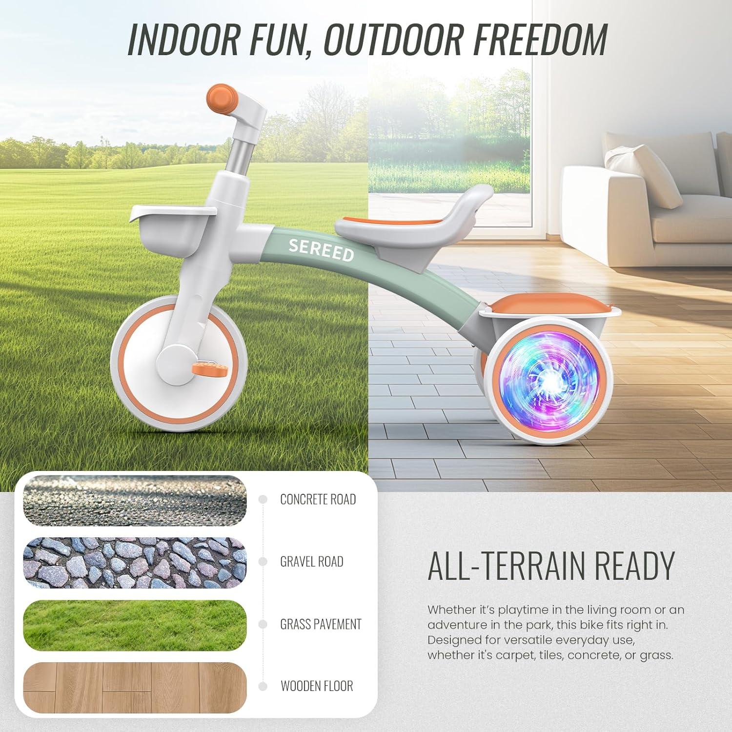 SMOOTH RIDE: SEREED tricycle features precision bearings with unique pedals design, making it easier and smoother for little ones to ride and explore their world.