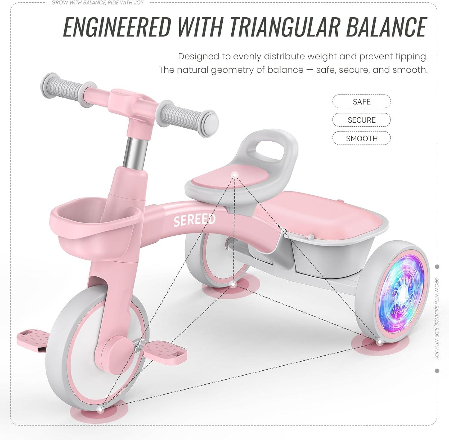 SMOOTH RIDE: SEREED tricycle features precision bearings with unique pedals design, making it easier and smoother for little ones to ride and explore their world.