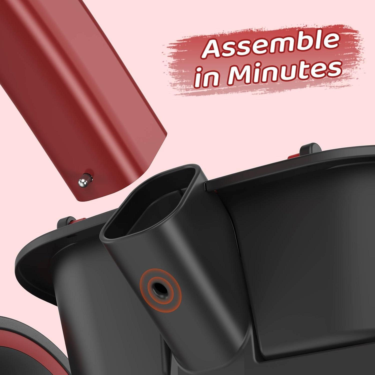 QUICK ASSEMBLY: With the spring-loaded snap design, your baby will get an adorable tricycle assembled in minutes, embark on an exciting ride adventure.